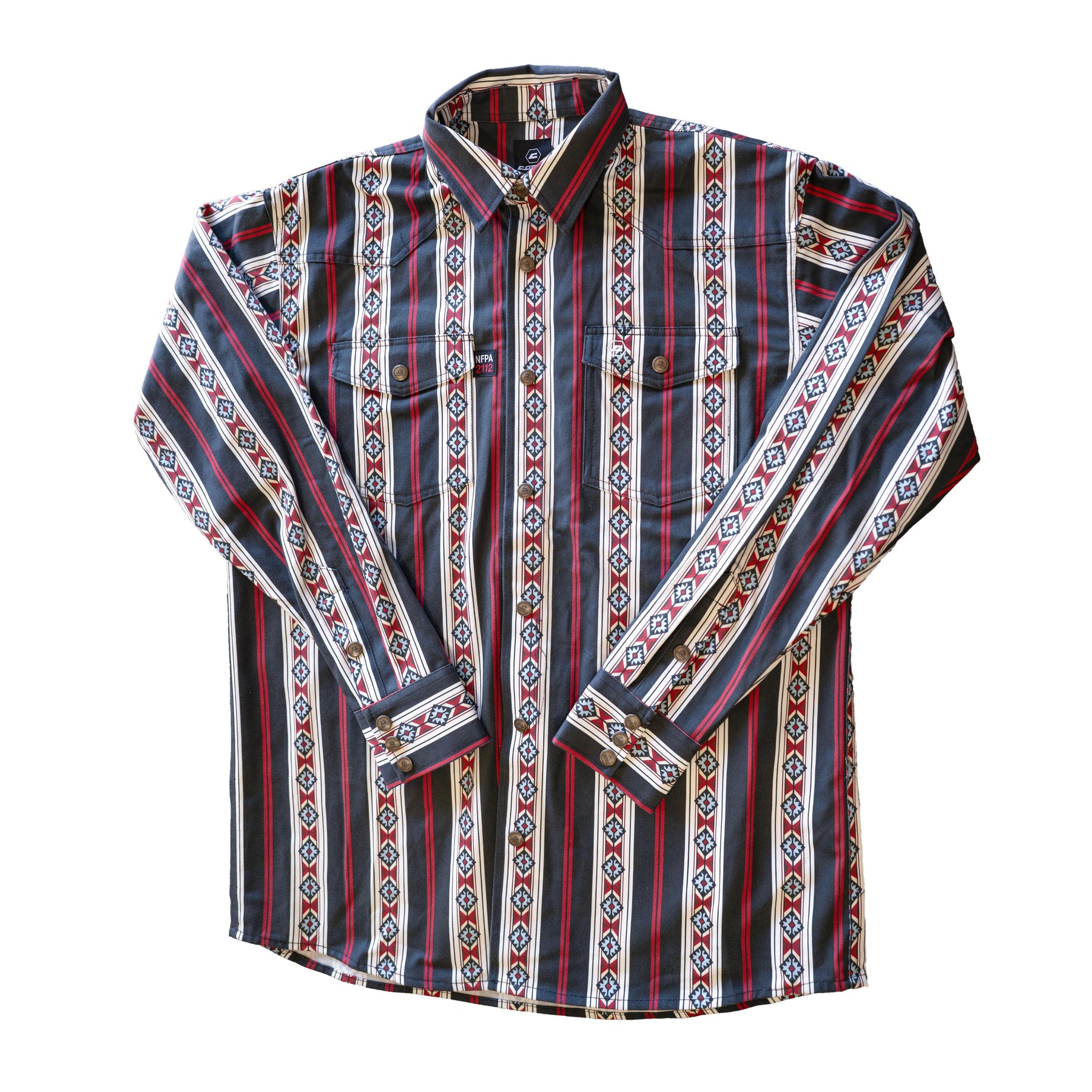 Unlike pearl snaps that melt or chip, our solid brass buttons are heat-resistant and built to last through years of tough wear.